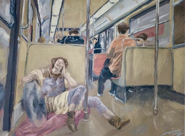 “Hace unos meses, mientras iba camino al trabajo, presencié desde la ventana del metro el vuelo de un ángel. Pasó tan velozmente que no logré distinguir quién era. ¿La alegoría del viaje? ¿o de la puntualidad, tal vez? No estoy seguro. Lo que sí pude ver, fue su elegante vestido y los airpods que llevaba puestos. De seguro iba atrasada, igual que yo.”